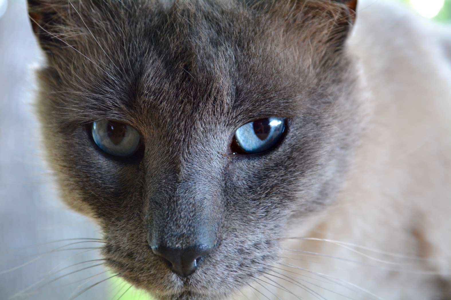 April 12, 2018 - Thursday - This is a stray cat that hangs out around the house. My cousin started feeding it so I guess it's not going anywhere. Dog isn't his biggest fan but he's really interested right up until the cat turns around and hisses at him. Then he runs like a big chicken.