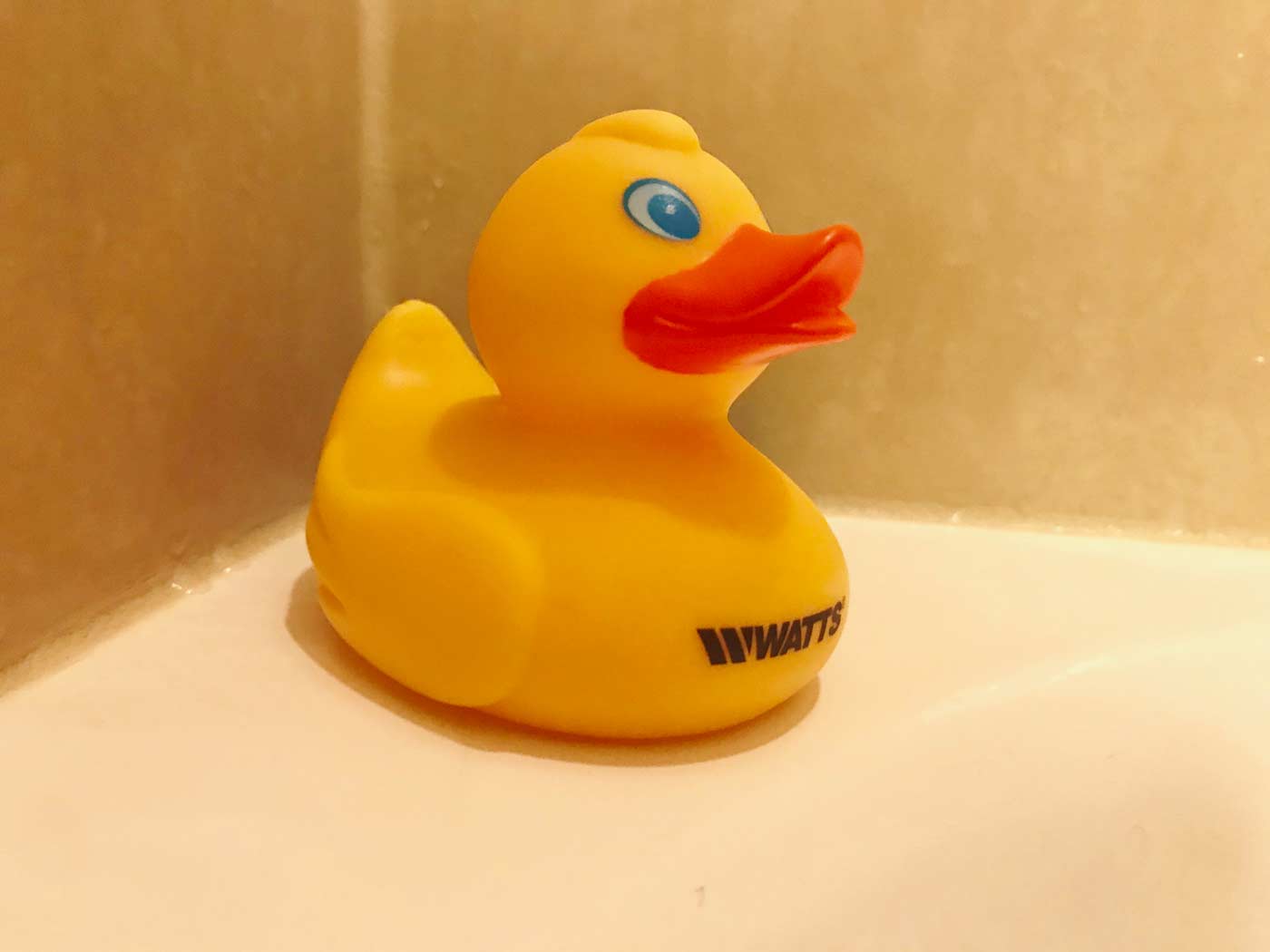 April 23, 2018 - Monday - I'm walking a bit better but still not winning any races. Went to visit a friend after work today. She has a little rubber ducky in her bathtub. She says it for when her grandkids come to visit, but I'm not sure if I believe her. I guess this is in the guest bathroom so maybe she's telling the truth.