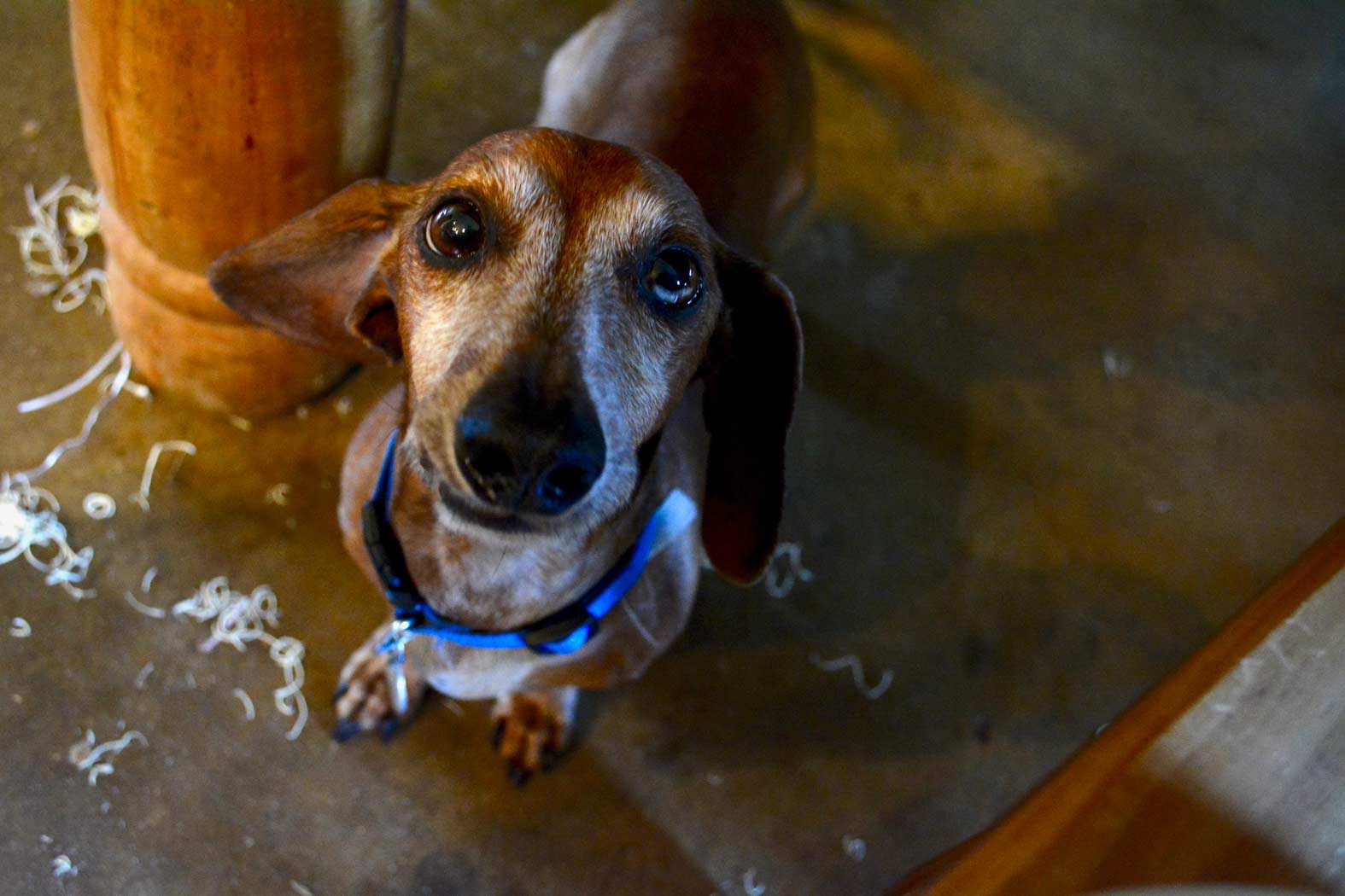 March 31, 2018 - Saturday - This is Rusty, he's one of my brother's dogs. I call him Killer, because he's little and barks at me every time I come over. Though he's starting to get used to me since I've been here. It looks like him or his brother got into helping prep the Easter baskets.