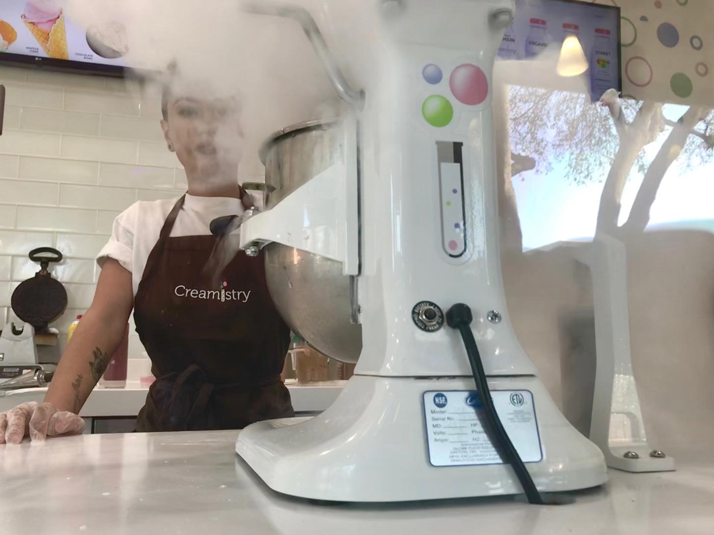 March 12, 2018 - Monday - Riley got a new job at another ice cream place. I'm not a huge fan of ice cream, cakes are more my thing, but this place has turned that around. I still like cake as much as ever, but I really like this ice cream. They make it right in front of you with liquid nitrogen with lots of flavors to choose from.