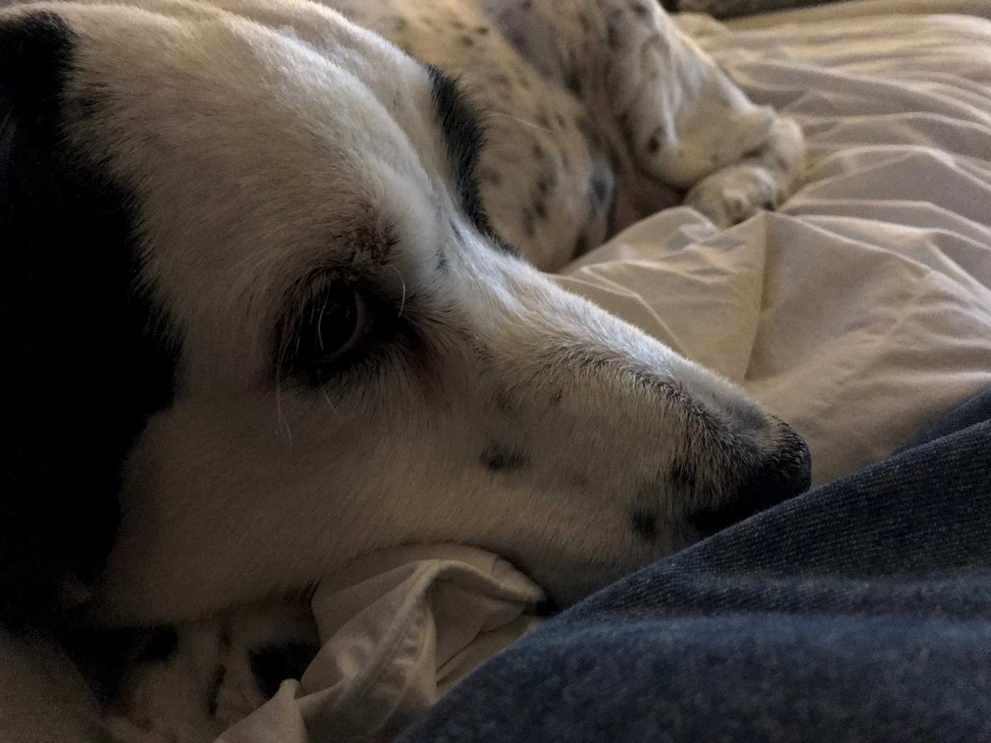 March 26, 2018 - Monday - This is my cousin's dog, Bowie. My cousin has been living with my dad while he's remodeling his own home. Dad started calling Bowie, Dog, from a John Wayne movie and it kinda stuck. They have called him Dog for so long he now responds to that as well as his real name. Nice having a dog around again.