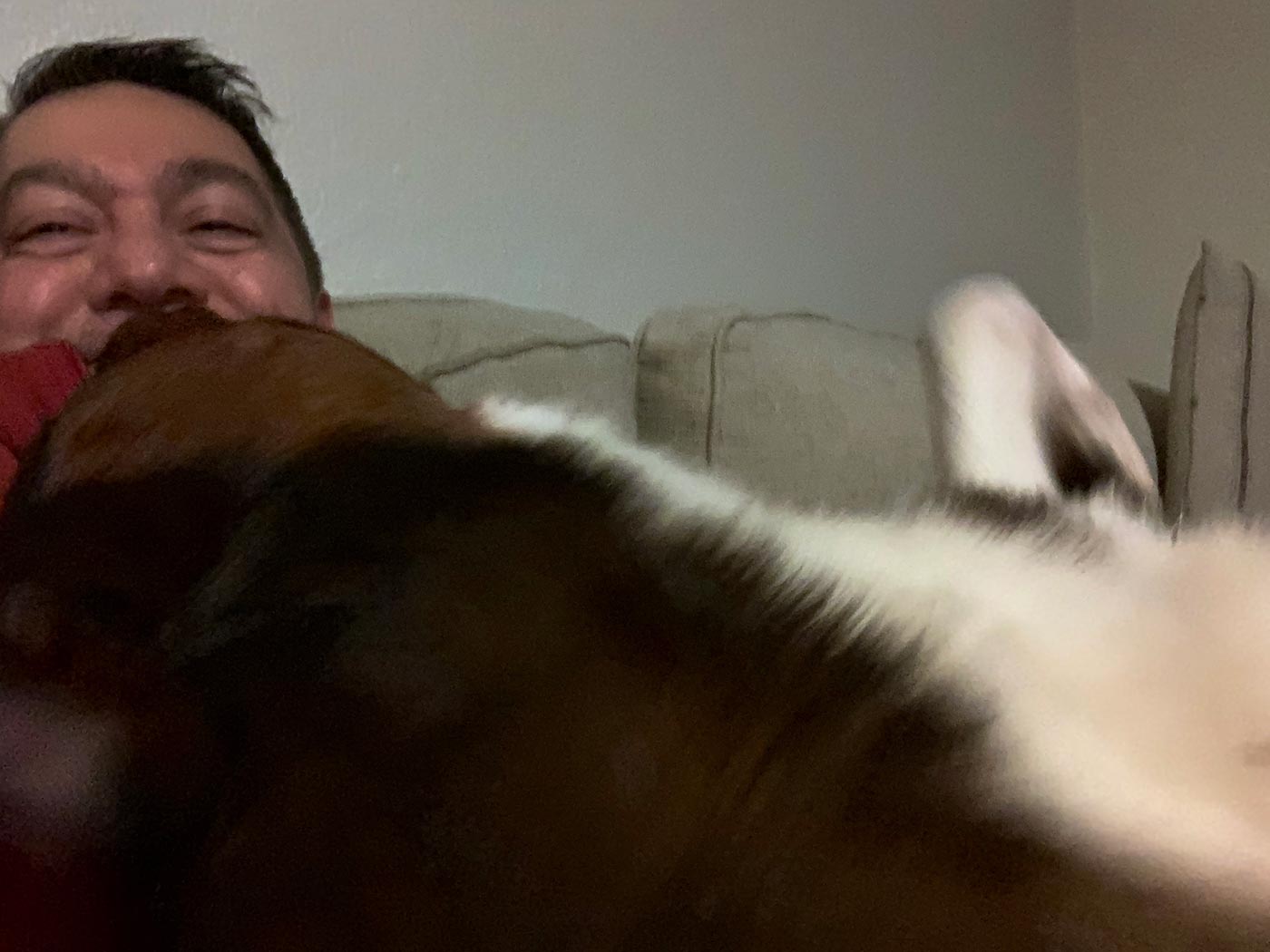 December 6, 2019 - Friday - Today I didn't take a photo of anything except trying to get a selfie with Zak. He really goes nuts around food but then again he's pretty thin and needs to fatten up a little. He's adapting really well and catching on to our routine pretty quickly. I think we're learning his personality too. Biscuit and Pancake don't care. Still.