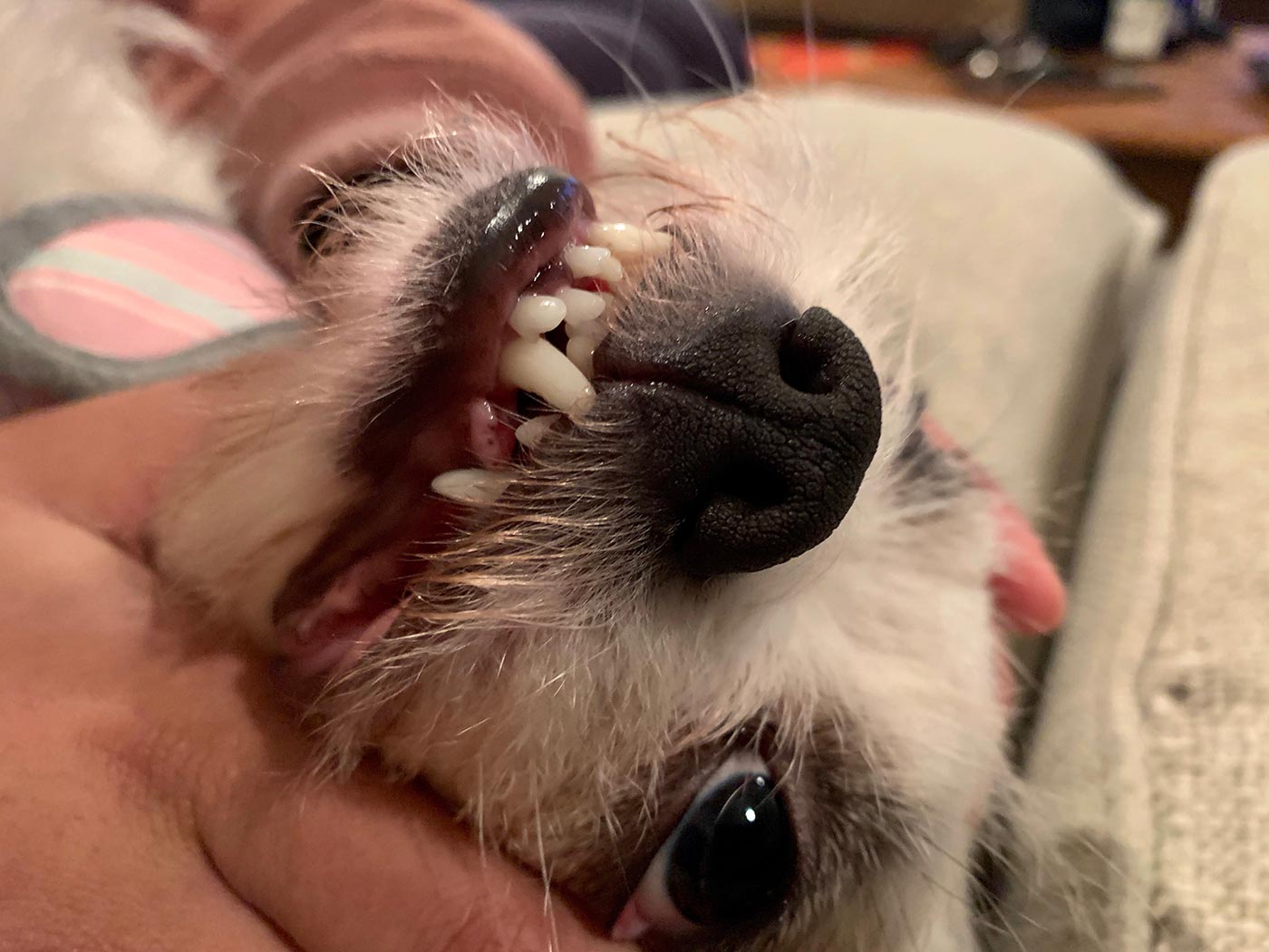 January 12, 2019 - Saturday - I worked all day today as expected. I left in time to get home to watch the Cowboy game. Riley was playing with Biscuit on the couch. She has such pearly white teeth but looks like she could use some braces or Invisiline.