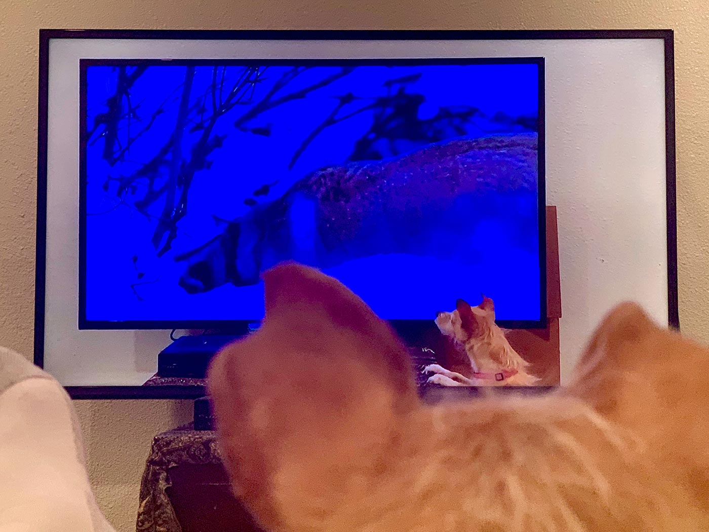 March 30, 2019 - Saturday - Tonight Pancake was having an Inception moment. I love the Memories my phone makes from all my photos. Pancake doesn't watch TV like she used to, she's so desensitized, but she seemed interested when Riley or I would be on it and then I just thought this was funny.