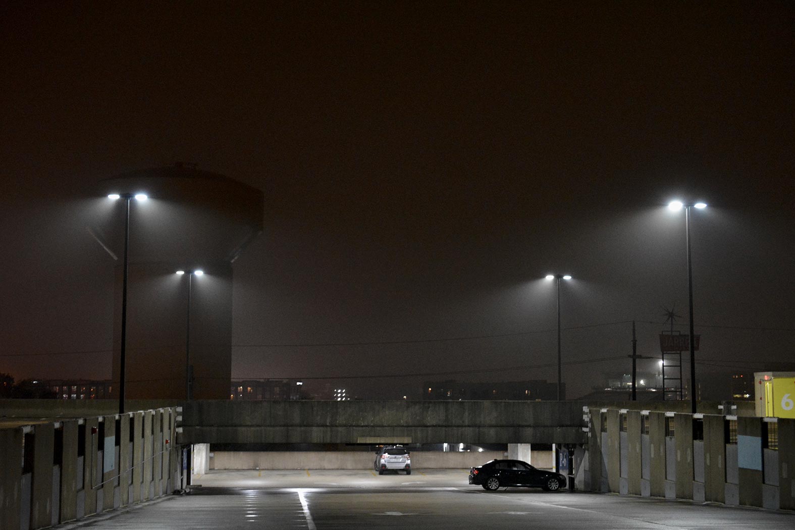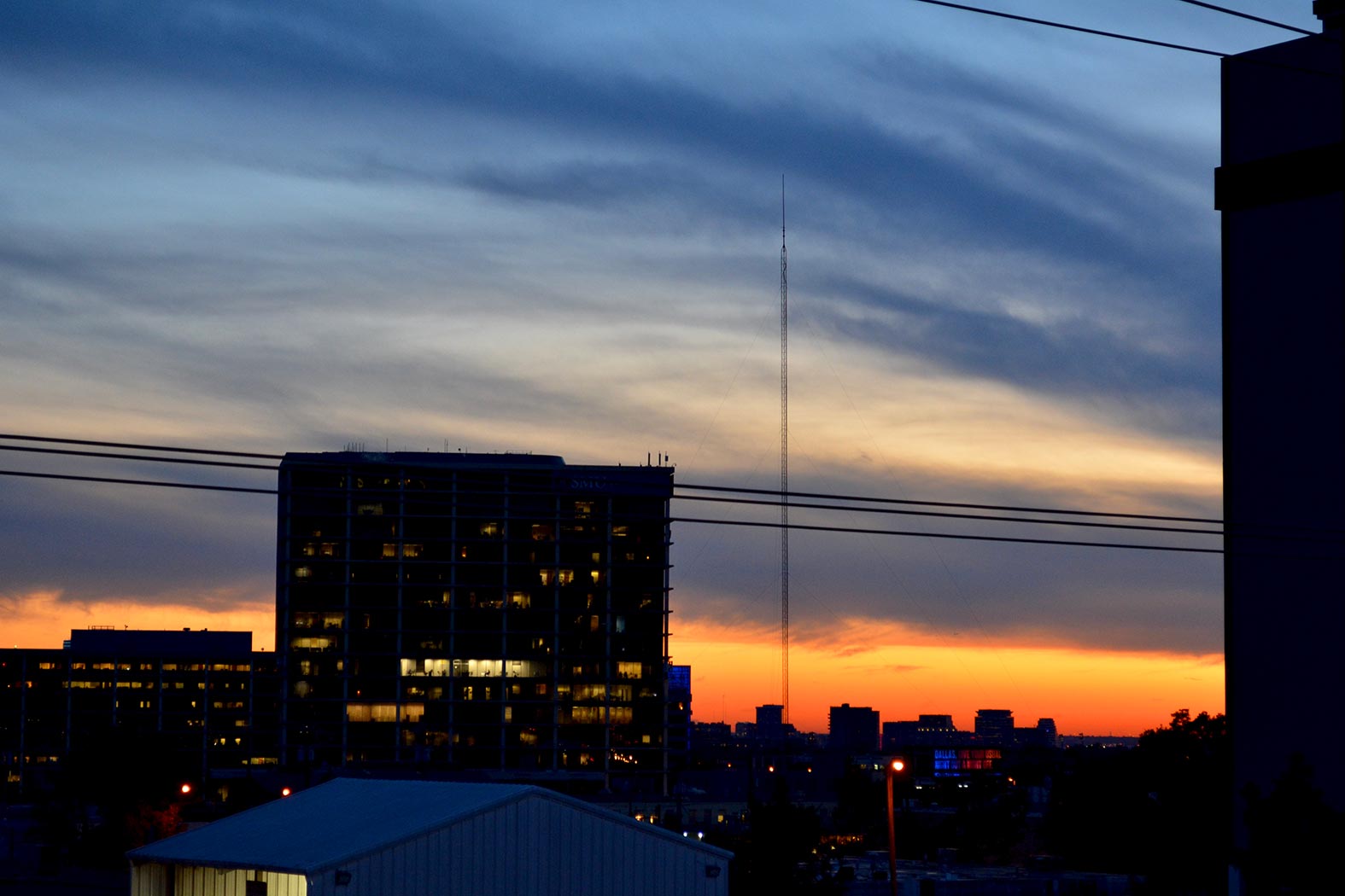 November 19, 2019 - Tuesday - When I left work I took the stairs down 12 flights, got out the door and realized I left my dinner in the fridge. Went back, took the elevator this time, and took the stairs up to the top of the parking garage. Had I come straight here the first time I image I would have a similar photo, but not this one. Love the fiery colors.