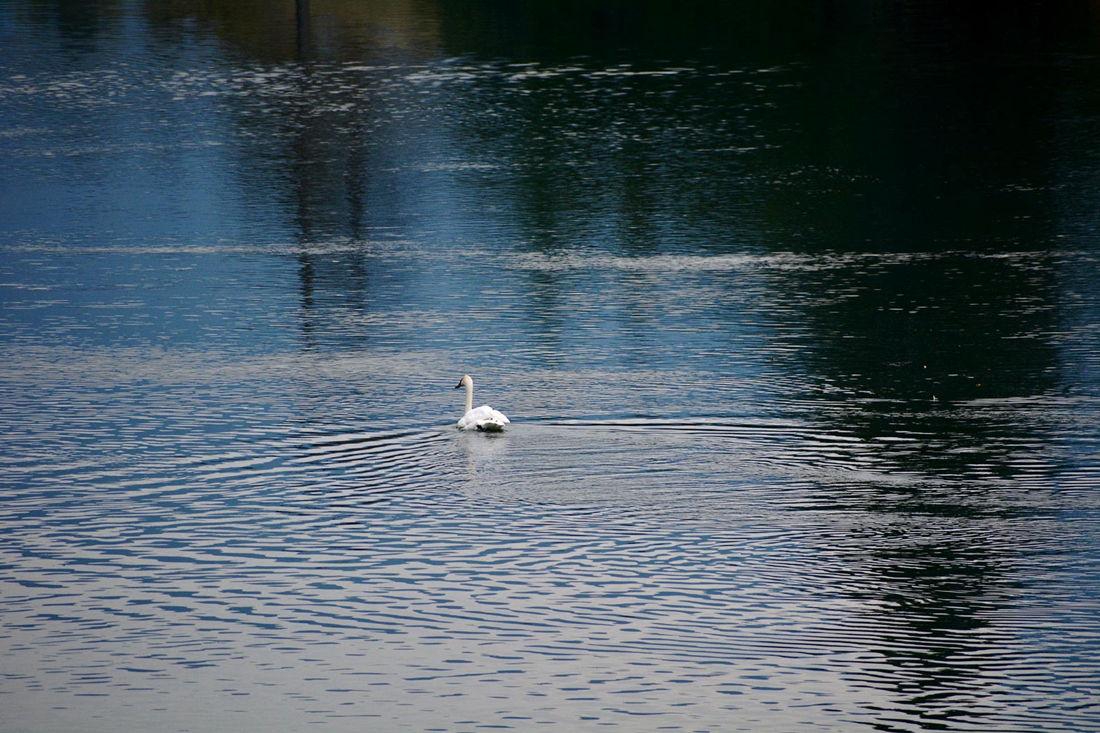 October 16, 2019 - Wednesday - On our second walk of the day we walked to a different part of the river. My cousin and his wife have a favorite park bench out here. We brought a little whiskey and a few cigars and watched the evening go by. They talked about seeing a pair of bald eagles out here and this lone swan.