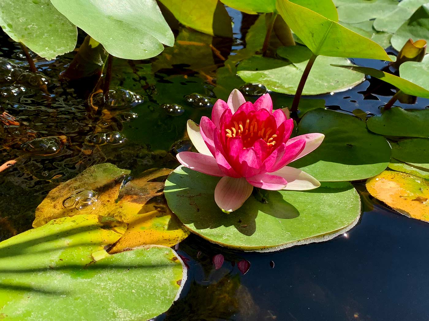 October 1, 2019 - Tuesday - The pho place has some lily pads blooming in their koi pond. I didn't have my real camera and it was hard to get a good angle of this without falling in.