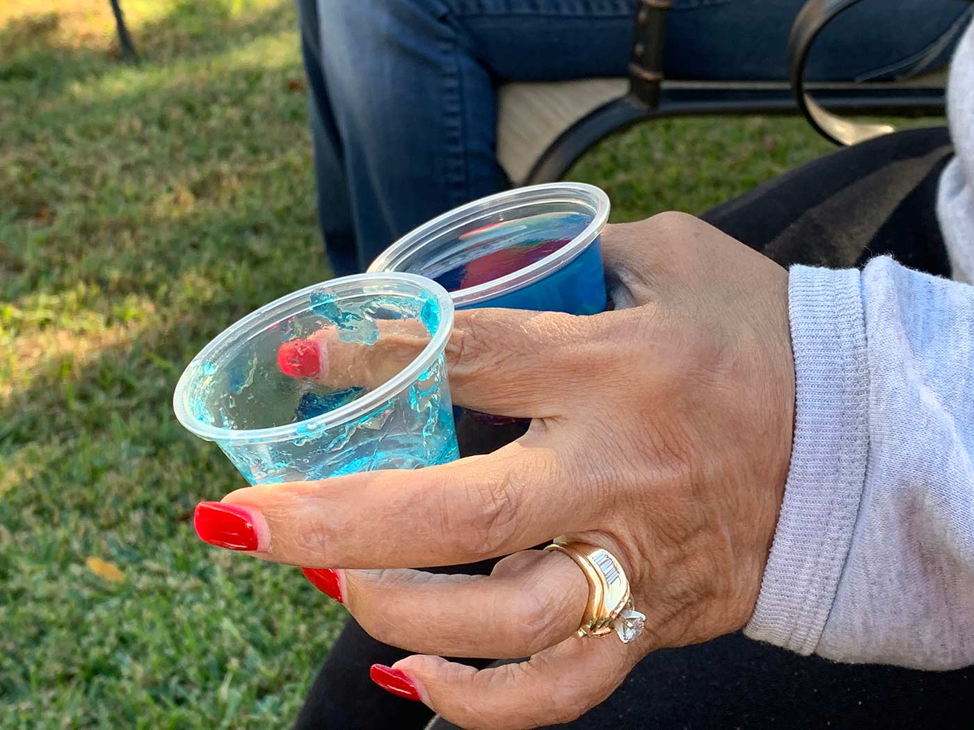October 12, 2019 - Saturday - My oldest sister's family really knows how to have a good time. I sat next to her watching her and her longtime friend snack on a few of these. My sister's friend said she remembers when I was born. That means they have been friends a really long time. Lots of family, a bounce house and jello shots, how could you not have a good time?
