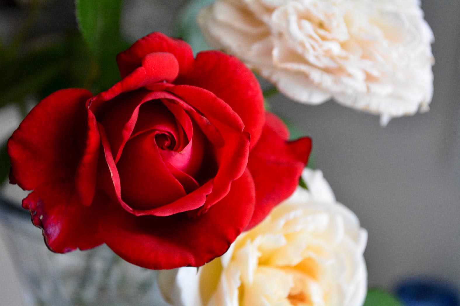April 25, 2020 - Saturday - I usually start the day by walking out with Zak to the backyard so he can do his business. While I'm out there I've been cutting some roses to bring them inside. The bushes are both overgrown and maybe a little unhealthy but there are so many red and white roses. Love the smell of fresh flowers.