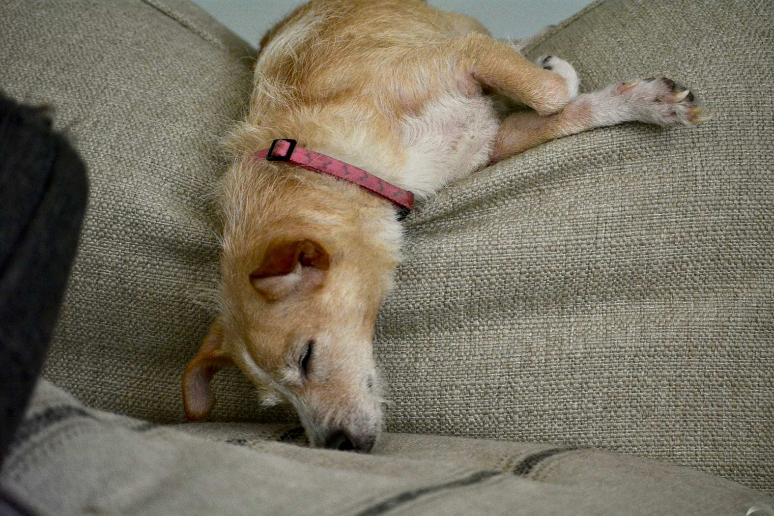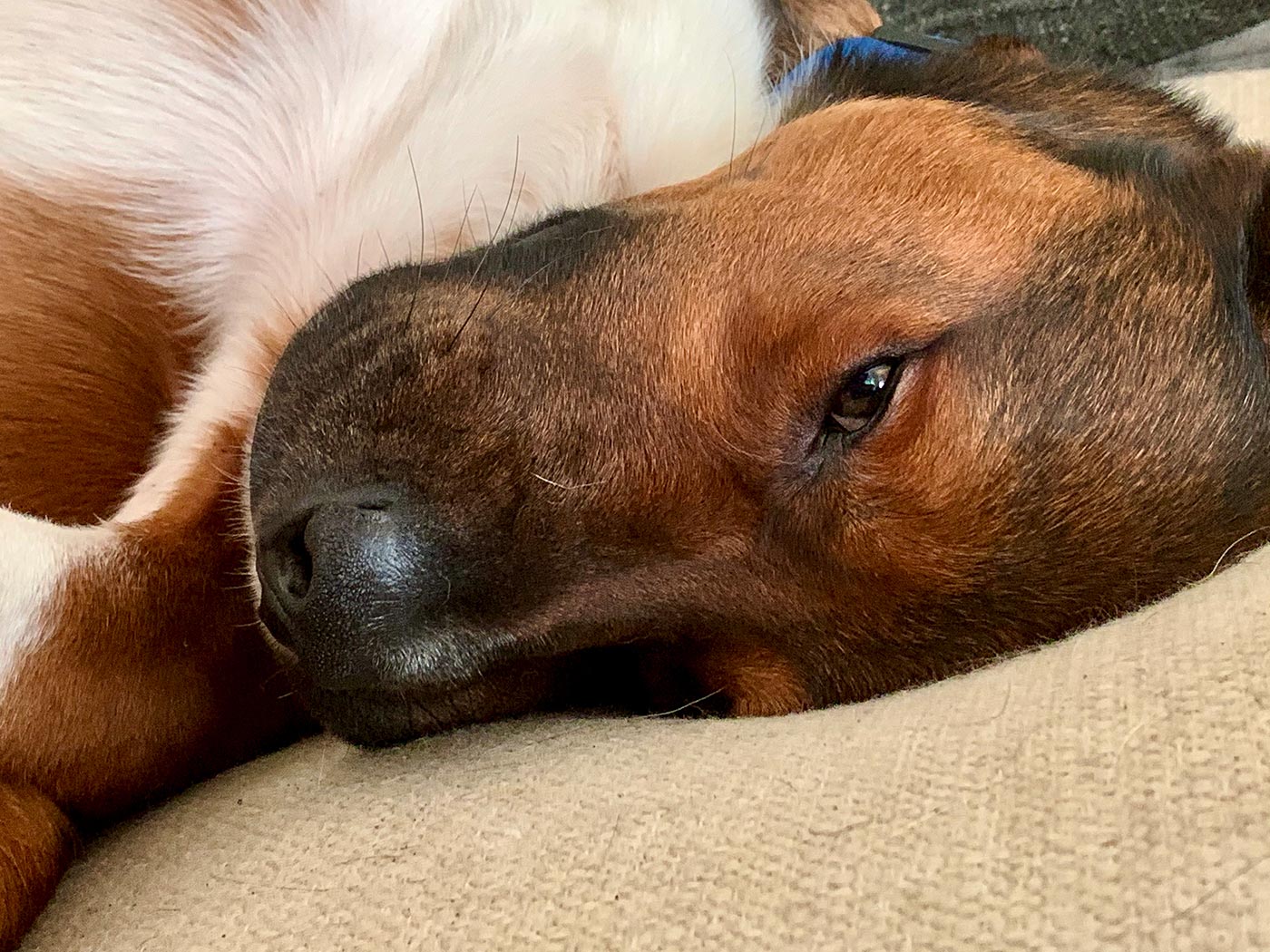 April 20, 2020 - Monday - It looks like Zak is having a rough start to his Monday. He spends a lot of the day curled up on the couch while I work. Sometimes I'm working from the couch with him, sometimes I'm at my desk. I'm gonna kinda feel bad when I do have to go back to work knowing he's in his kennel again.