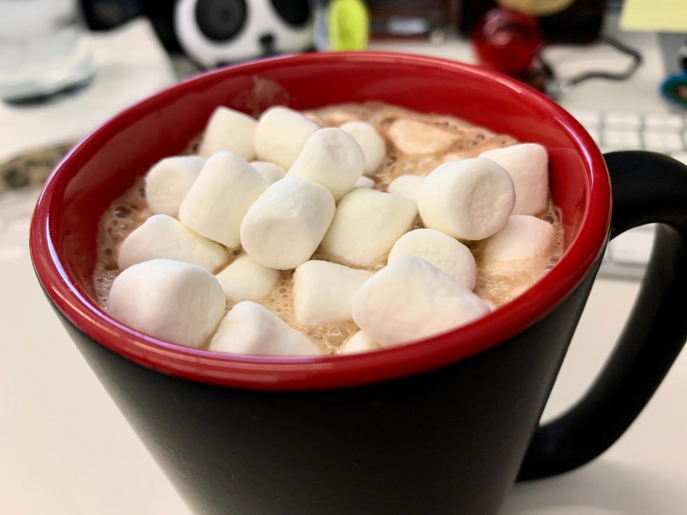 February 19, 2020 - Wednesday - It was cold and rainy this morning and I since I don't drink coffee, hot chocolate with more marshmallows than necessary seemed necessary. It's cold and rainy right now and I'm about to take Zak, Biscuit and Pancake out for their last walk of the day and I wish I had some of this here at home.