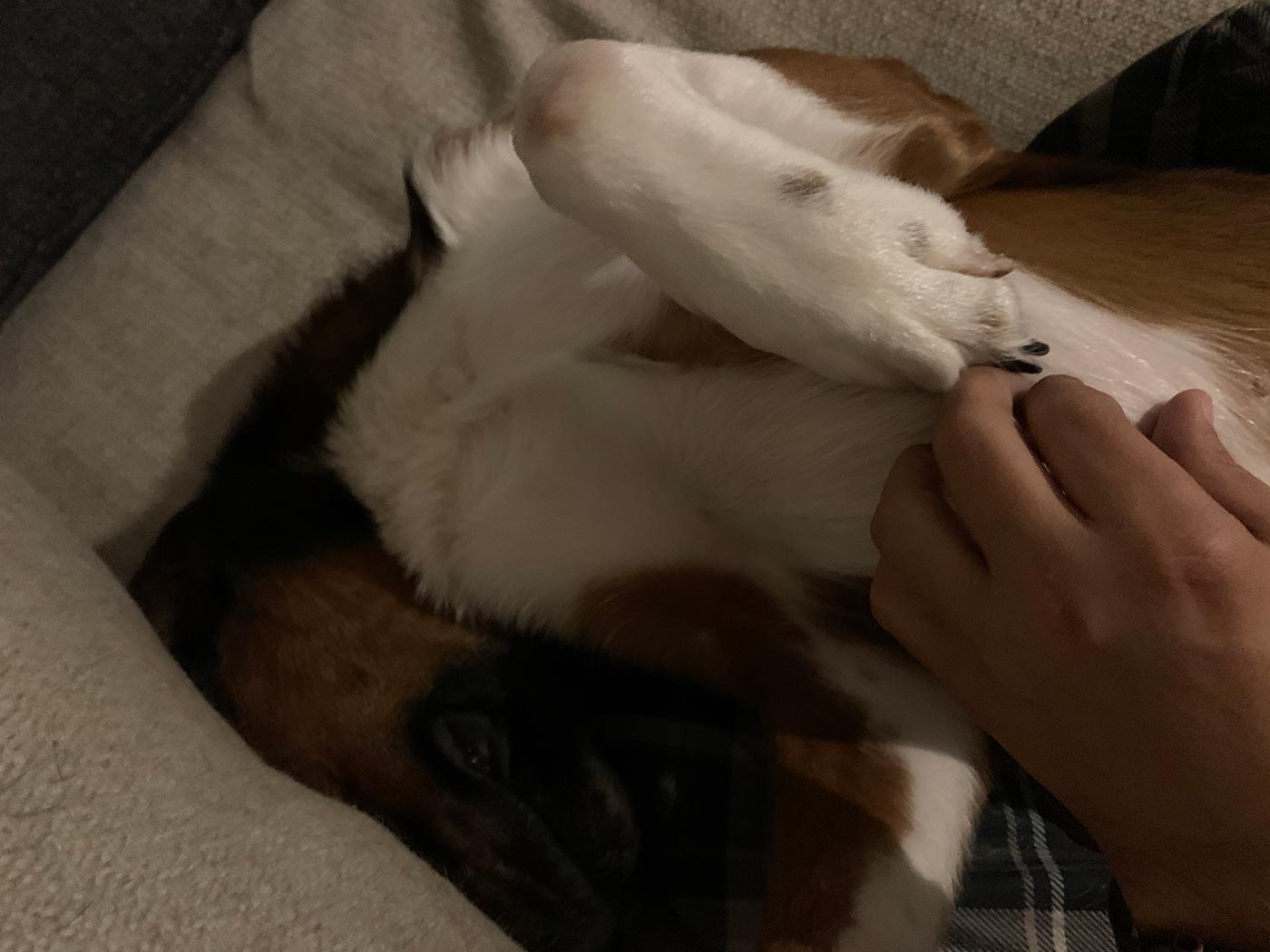 February 22, 2020 - Saturday - I don't know what happened during the night but I woke up and my lower back was killing me. This is our morning routine. As soon as Zak is ready to get up, whether I am or not, he jumps up on the bed and if I respond he comes and lays down on me to get some morning belly rubs.
