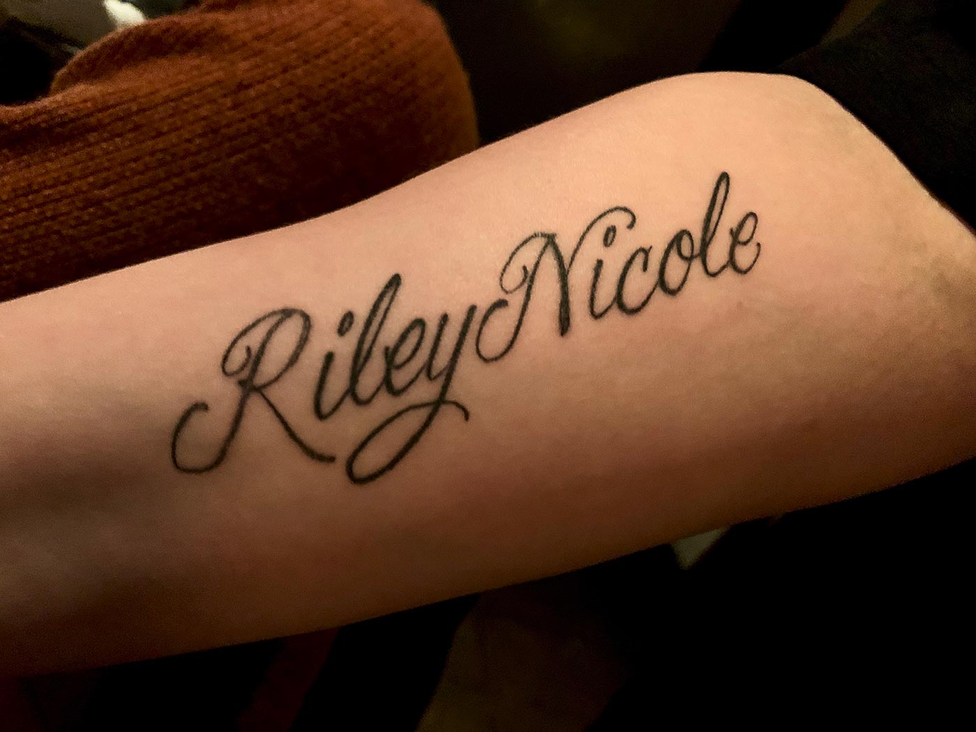 February 28, 2020 - Friday - Today some of us from work walked across the street for lunch. Our waitress was bringing around our drinks when I noticed this on her arm. Riley doesn't have the most unusual name in the world, but what are the odds she'd have the same middle name too. I didn't think to ask her her last name. Maybe we're related.