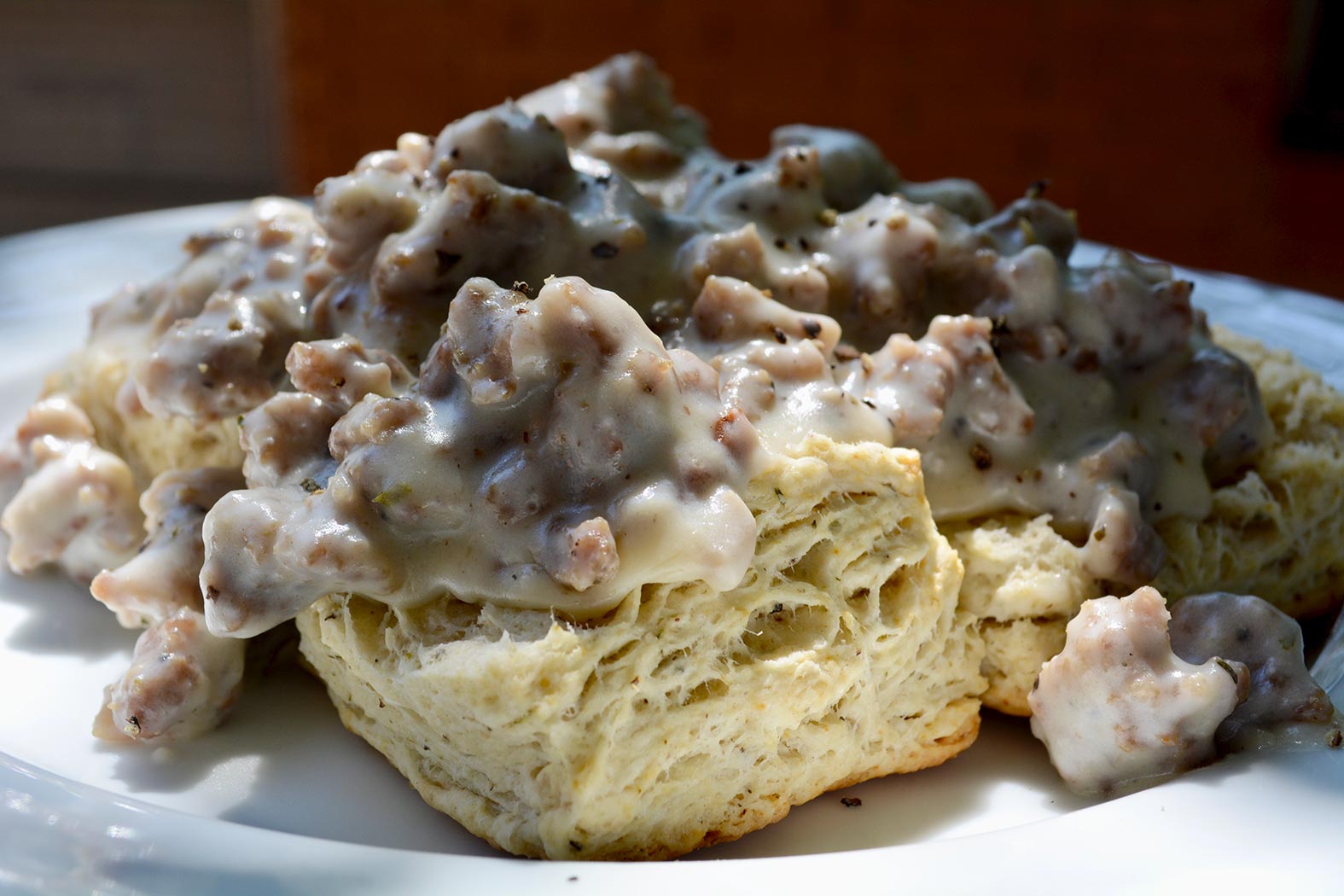 May 7, 2020 - Thursday - So I did this for lunch today! I was watching something the other day and biscuits and gravy came on. Then yesterday I saw a lady on TV make biscuits. I got some tips from Riley last night and today was the day! I can probably claim quite a bit of beginners luck because these were really good. The sausage gravy turned out really good too.