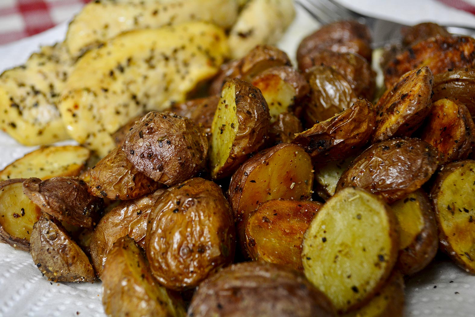 May 13, 2020 - Wednesday - I picked up some Ziziki's seasoning last week. I made some roasted baby potatoes and some baked chicken for dinner. Now if I only had some pita and tzatziki. I have some purple onion. I need to plan this better next time.