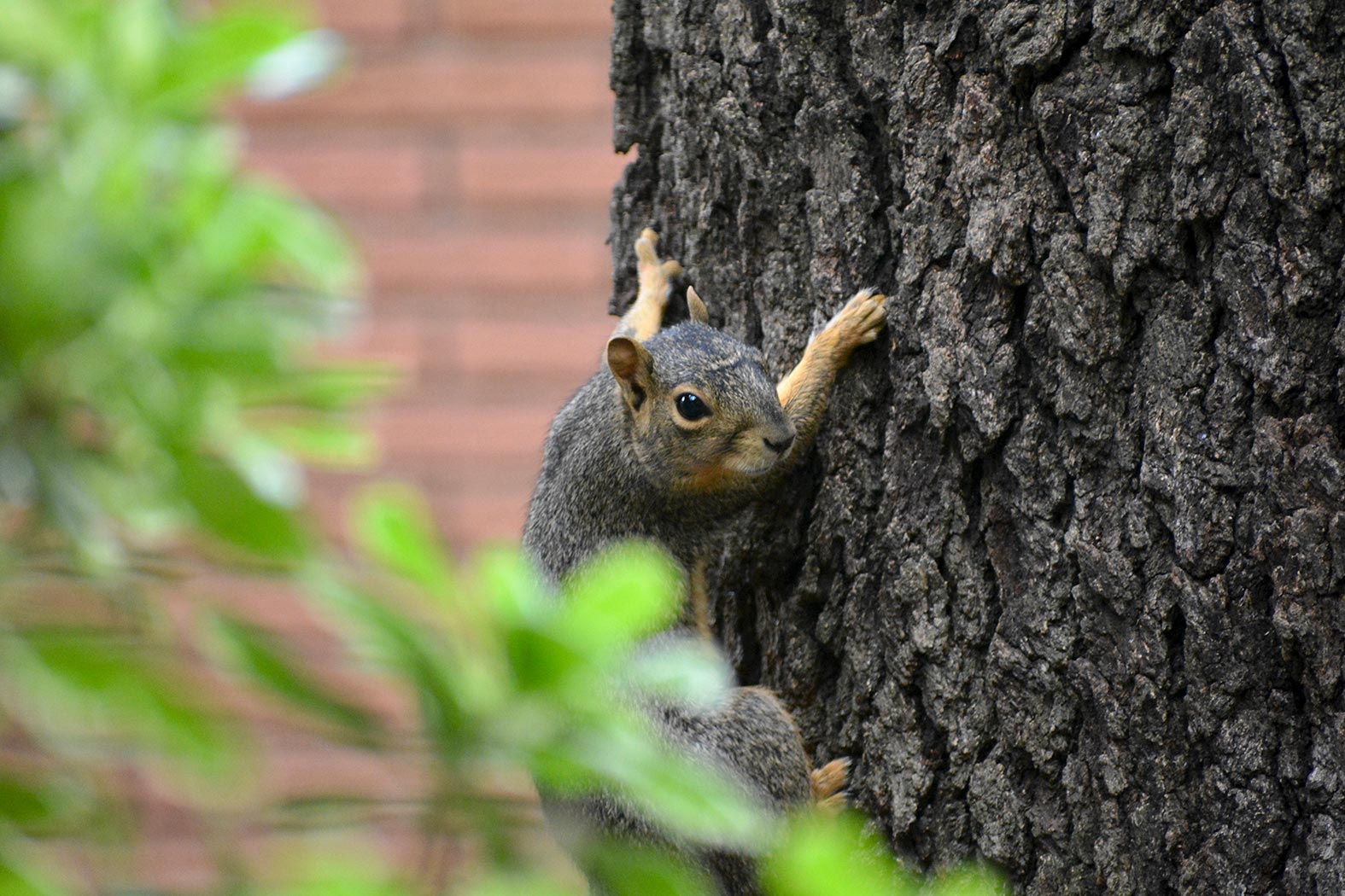 May 20, 2020 - Wednesday - This little guy was just on my porch getting a snack I left out for the him and the birds when Zak caught sight of him and decided to go nuts. (no pun intended) This guy ran over to this tree before he realized Zak couldn't get to him. He stayed here for a while which made Zak really crazy.