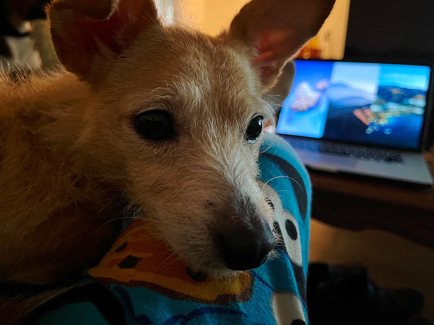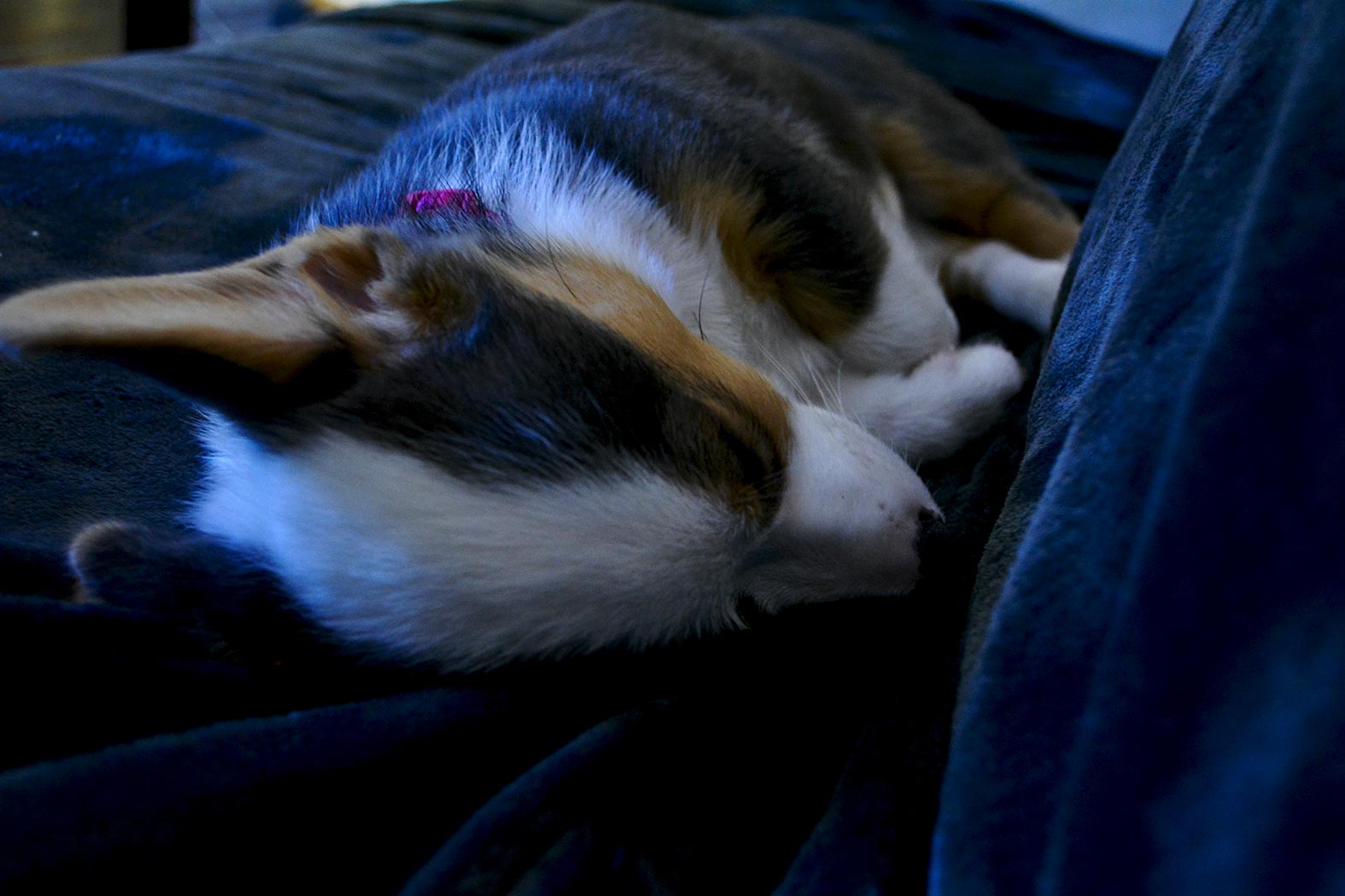 November 22, 2020 - Sunday - Today was a much more relaxing day at home for the two of us. It's been a since Shadow in 2004 that I've had a puppy. I forgot how much work they are. She likes to chew on stuff and hide when she's having an accident. And when she's not going full speed she's sleeping like this.