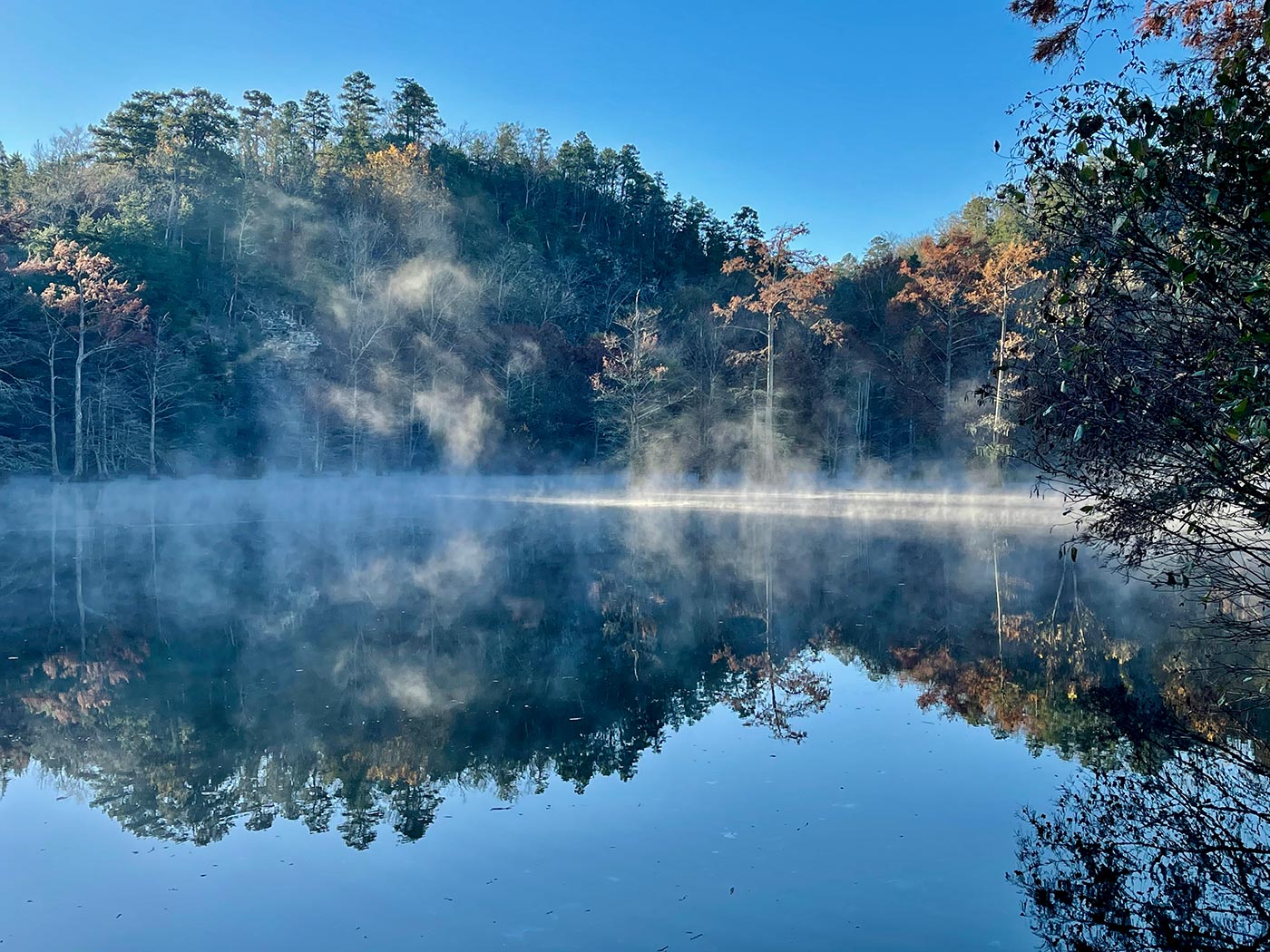 November 16, 2020 - Monday - Last night was the coldest I've ever spent outdoors. Zak did a good job helping the sleeping bag keep me warm. Down here by the river it gets light quite a bit before you see the sun come over the hill. Zak and I walked down to the river for this beautiful view a few times this morning. He's been such a good boy this trip.