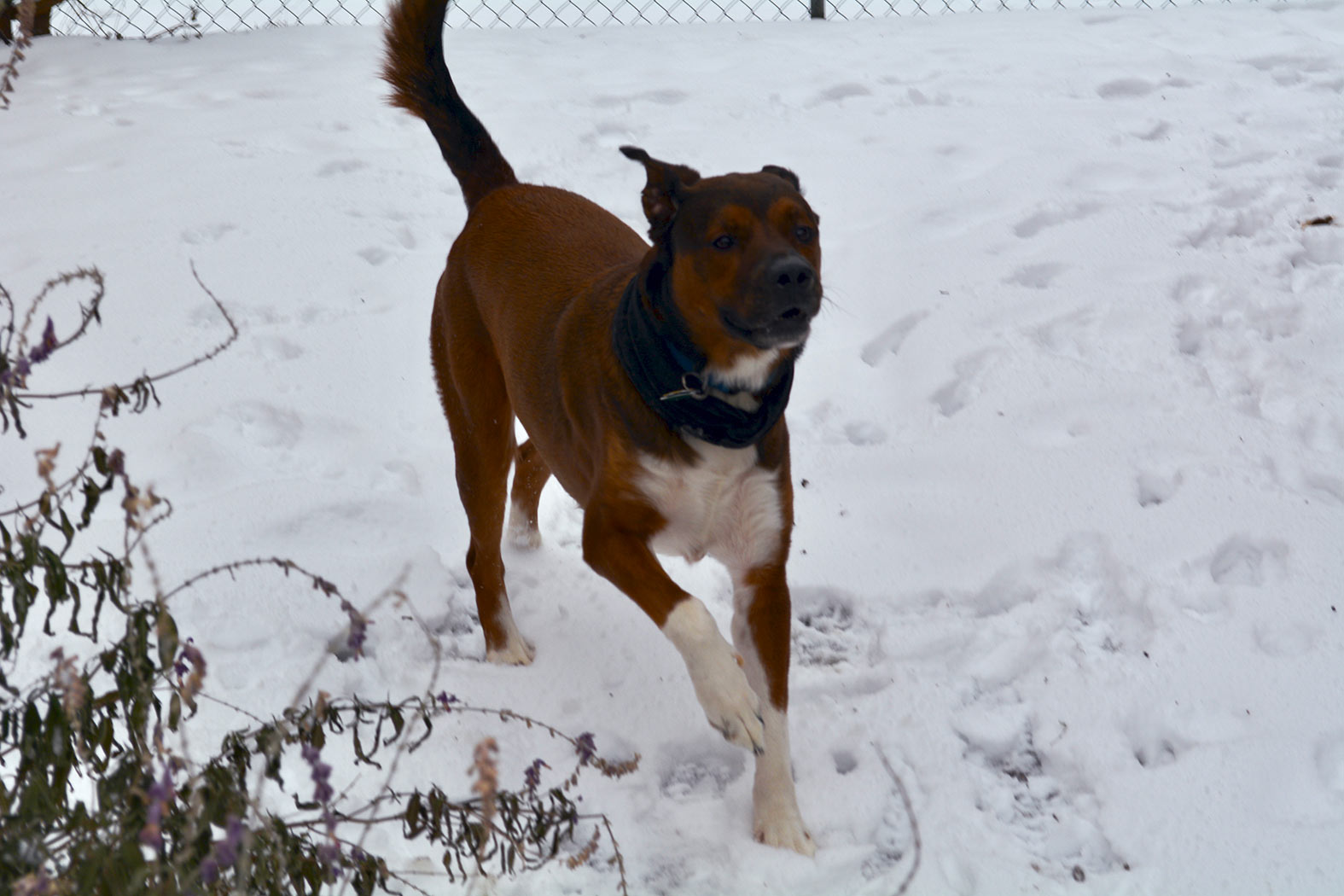 February 17, 2021 - Wednesday - Today I went out to look for something a bit more interesting to photograph. My yard is quite small and I really couldn't find much of anything. While I was looking Zak kept running back and forth. I could hear him trying to open the gate. Thankfully he couldn't. I got this one of him while he was running my way.