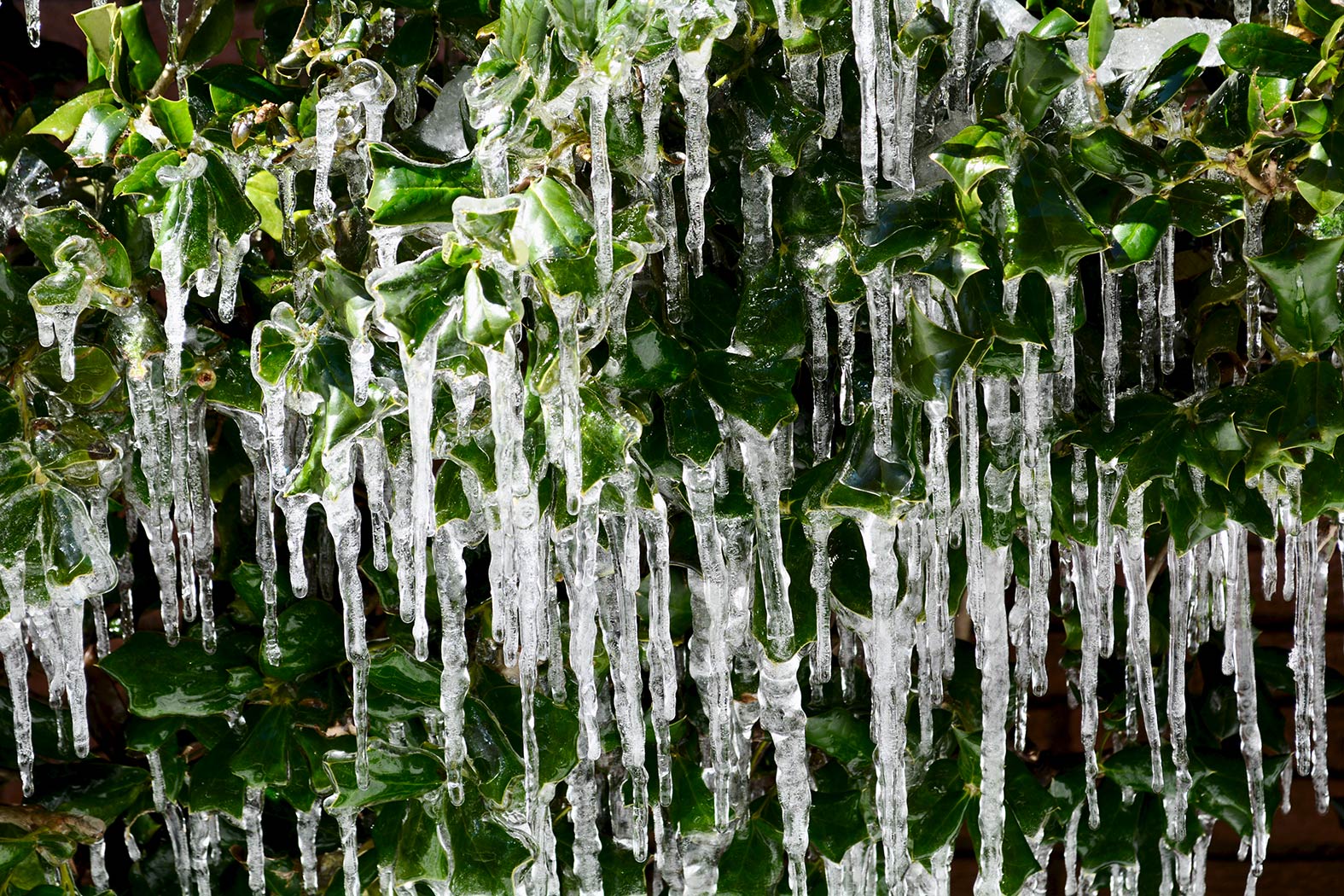February 19, 2021 - Friday - These are my neighbor's bushes. They're right under the eave of her roof where the snow is melting. I thought it looked really cool in the bright sunlight. I'm so glad we're getting warmer finally. It wasn't so bad for us. We only were without power for the basically a couple of days. So many had it so much worse.