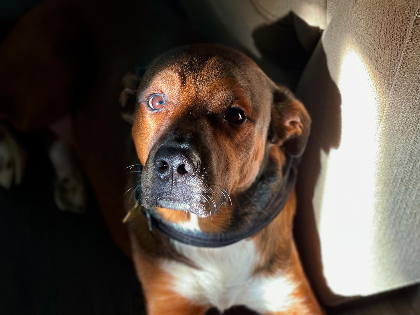 February 3, 2021 - Wednesday - I had the backdoor open today and as I walking past Zak notice the sun shining on him. Fortunately he stayed where he was while I got this photo of him. He's a knucklehead sometimes but he's a handsome boy.