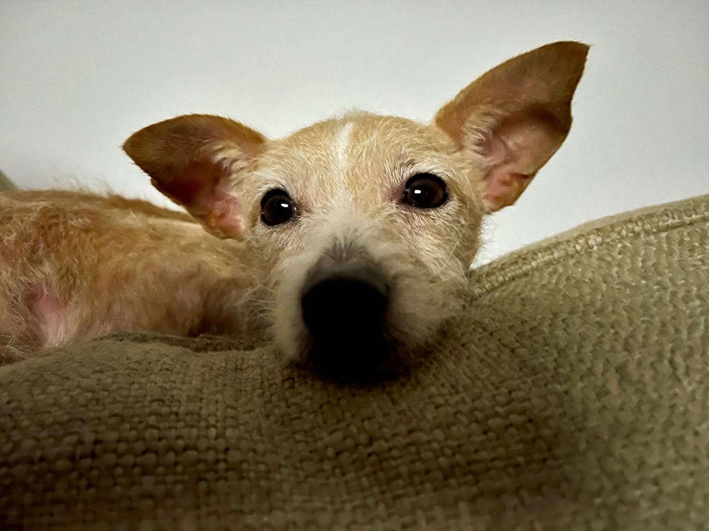 February 6, 2021 - Saturday - Today I was laying on the couch and Biscuit and Pancake already got next to me. Zak was being a bit jealous. He laid at the other end of the couch and wiggled his way around near me. When he finally came to a stop this is where he ended up. He can be kind of needy sometimes.
