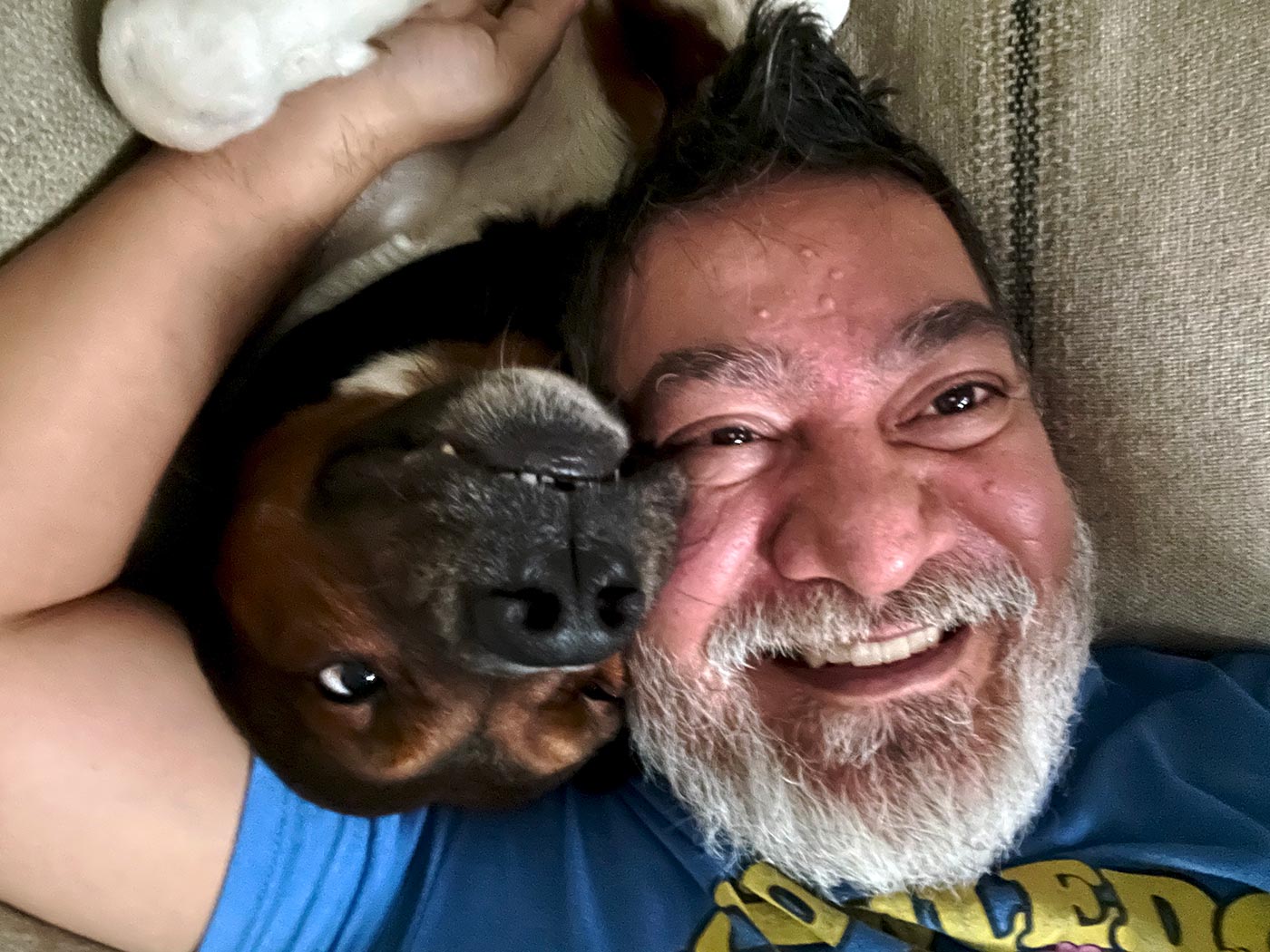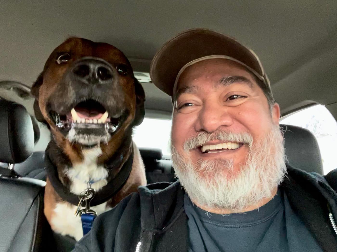 February 10, 2021 - Wednesday - This was the best part of the day today. I had to get out and run an errand for work and decided, much to Zak's delight, to take him with me. After a quick stop I took him to Whataburger for a Breakfast on a Bun. He sure does look happy doesn't he.