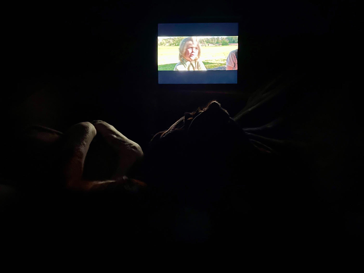 February 16, 2021 - Tuesday - Our electricity has been out most of the day. I was able to charge all my stuff and Riley is using my laptop to watch movies. I used my iPad. I have a bunch of Photo's memories on it and a handful of movies. Zak was being a heated armrest while I watched Captain Fantastic. Really great movie with a good soundtrack.