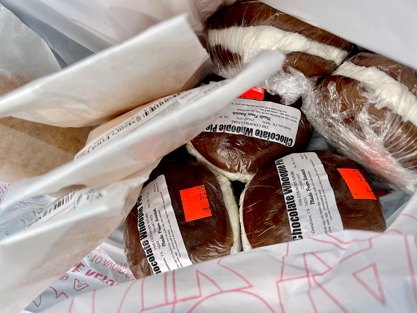 February 27, 2021 - Saturday - Today started off pretty rough because of my arthritis, but I had plans to meet a friend in Waco. I've not seen her in over a year and going that far you know I had to make a stop at my favorite Amish store. They had lots of chocolate whoopie pies!!! It was a little out of the way but not far enough for me to not go.