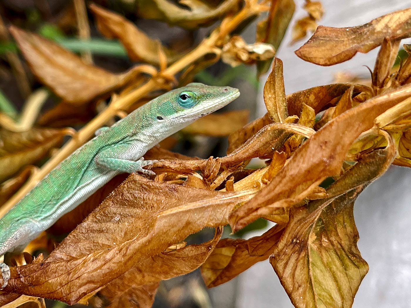 February 28, 2021 - Sunday - Today was another day spent with a friend I've not seen in a long time. It was also where I was able to share all those whoopie pies because if I didn't I would have eaten them all. Today we spent some time talking out on the patio. This little guy was catching some sun on last year's tomato plants. The last three days have been good days.