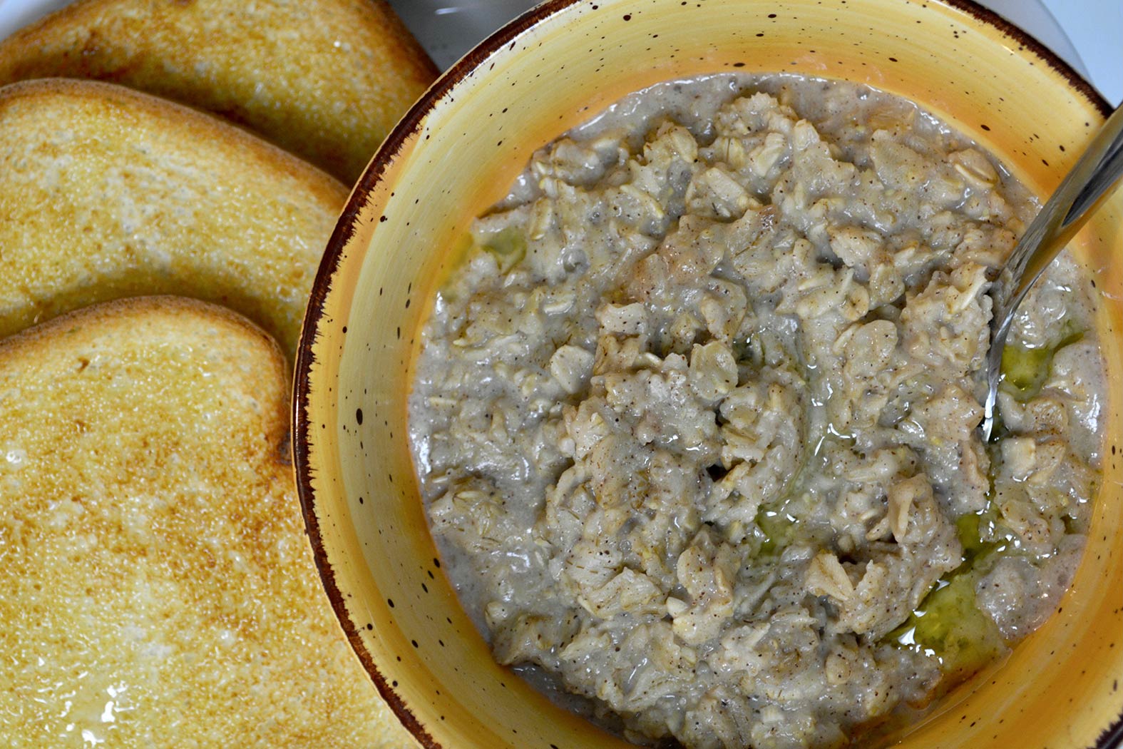 March 2, 2021 - Tuesday - Today was another long day of work. By the time I was done all I could think of for dinner was breakfast and that meant oatmeal and toast. I'm out of apples and brown sugar so I made this with cinnamon and honey and a little bit of butter. A warm bowl of oatmeal was just the way to end the day. I may start tomorrow just like this.