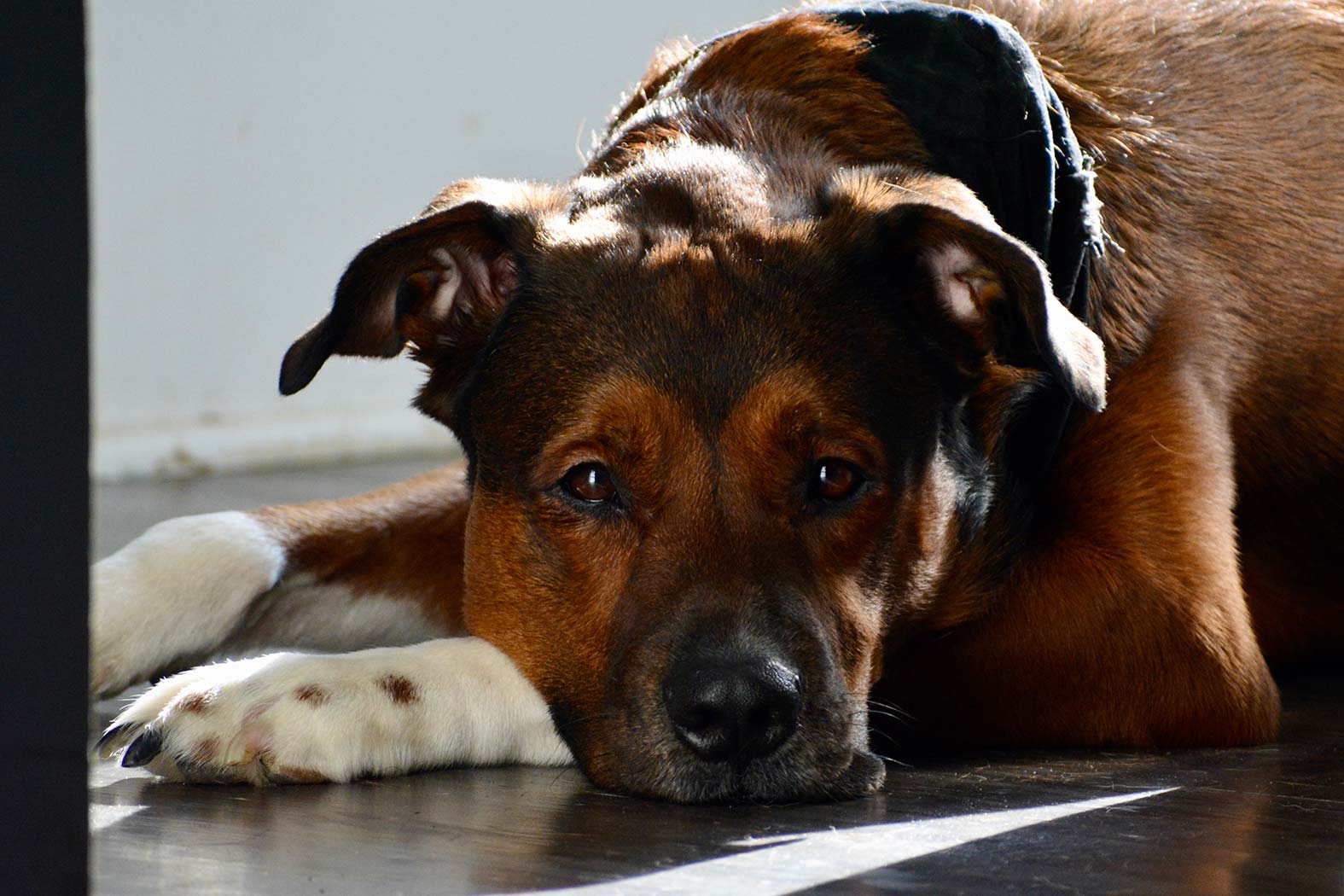 March 19, 2021 - Friday - Zak likes when I leave the back door open. He'll go and lay in the sun for a while and nap. The light from the camera caught his attention.