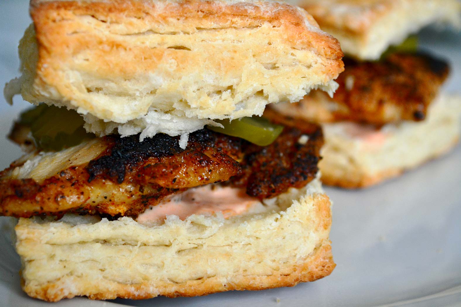 March 31, 2021 - Wednesday - I made biscuits again to make sure the other day wasn't an accident. It wasn't. I made some blackened chicken and spicy ranch. Put all that with lots of pickles on the biscuits and you have something Chick-fil-a or Popeye's would be proud to have on their menu.