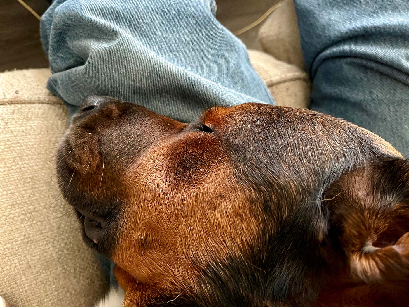 March 17, 2021 - Wednesday - I was able to wrap up my work day a little early today. I was sitting on the couch and Zak decided to come keep me company. He doesn't usually stay next to me unless I'm actively petting him, but today he came, laid down and went right to sleep. I guess he's thankful I let him sleep with me last night because he's afraid of bad weather.