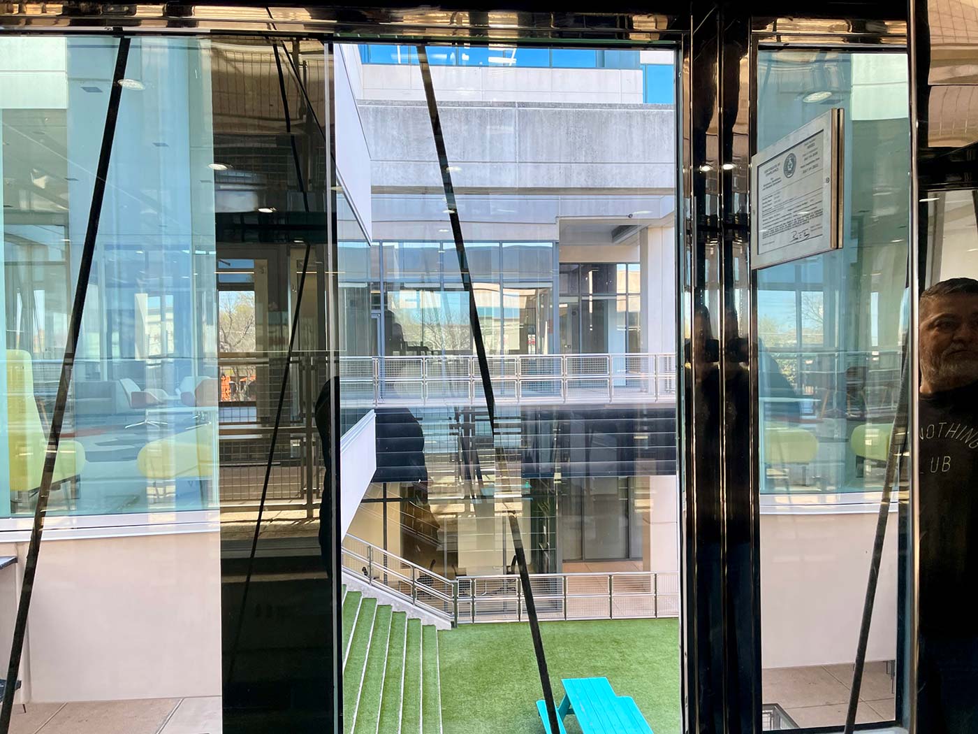 March 23, 2021 - Tuesday - I had an appointment to get my hair cut today at lunch. Parking for my haircut is in the same place where I used to work for years. This is the view out the glass elevator outside where I used to sit. I had a lot of great times working in this building and made a lot of really great friends.