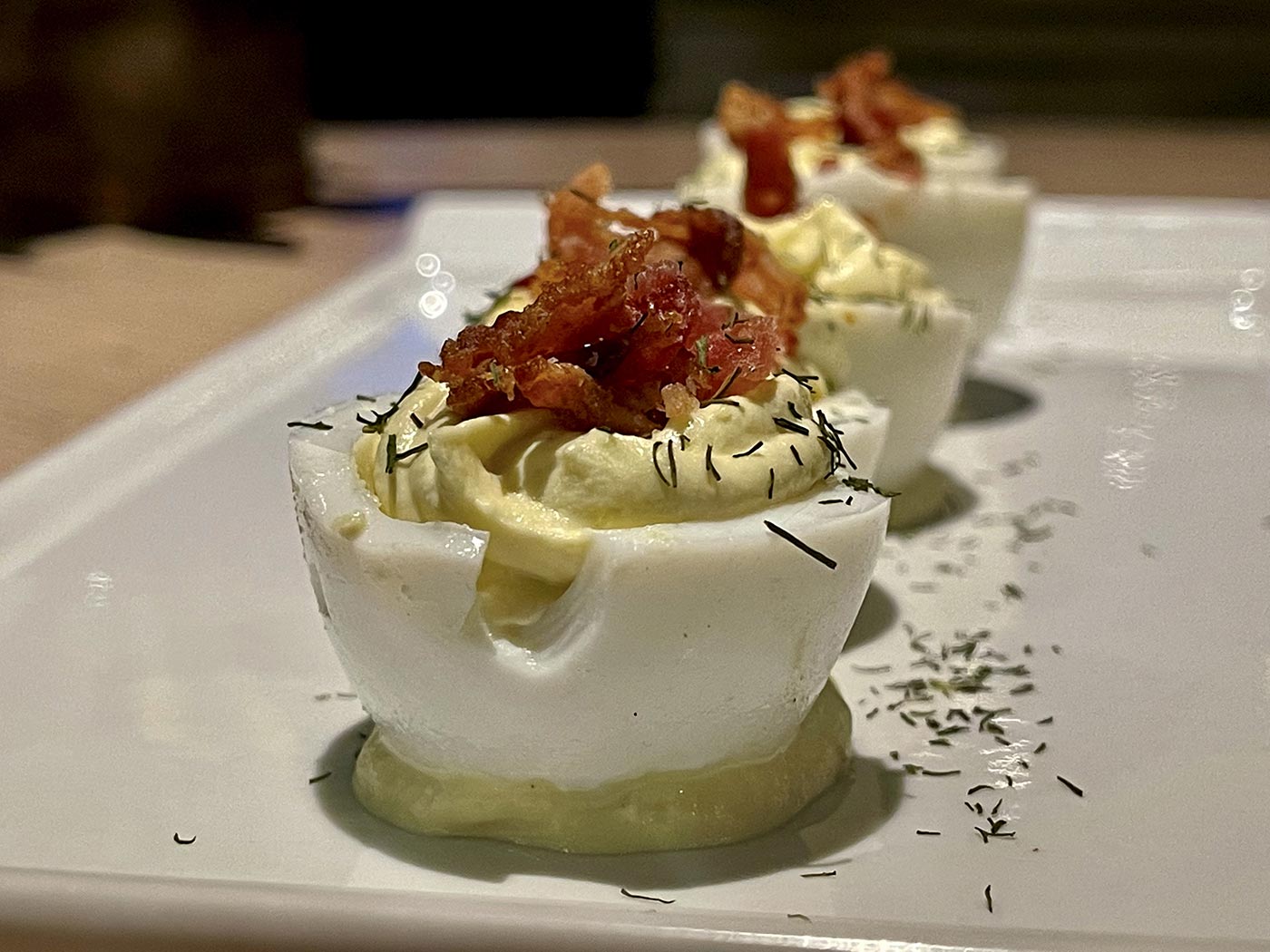 October 26, 2021 - Tuesday - Today is one of my dearest friend's birthday. Fortunately things worked out and we were able to get out to celebrate. After a meal of a bunch of appetizers we had salads for dinner. These deviled eggs were pretty good, but not as good as the cake we had later. We've been friends for 20 years now.