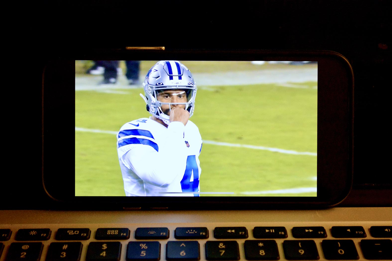 January 8, 2022 - Saturday - With all the streaming services I subscribe to this is how I ended up having to watch the Cowboy game tonight. I thought the game was tomorrow so I missed the first bit and fortunately it was a bit of a blowout so I didn't have to watch the whole game like this. I should have switched to my iPad at halftime.