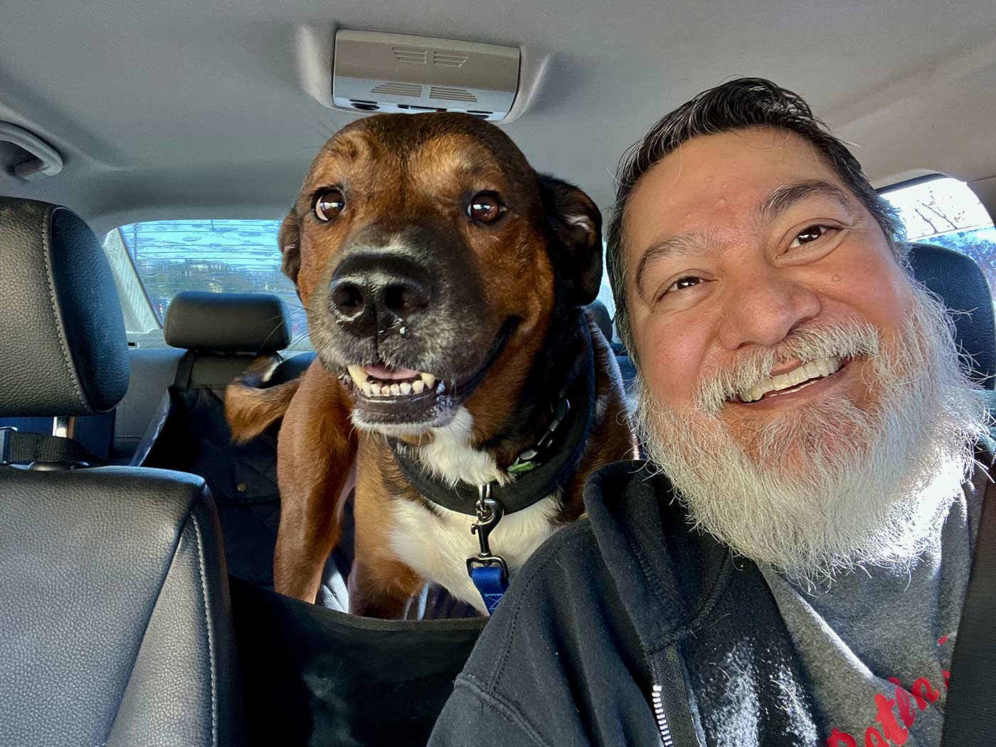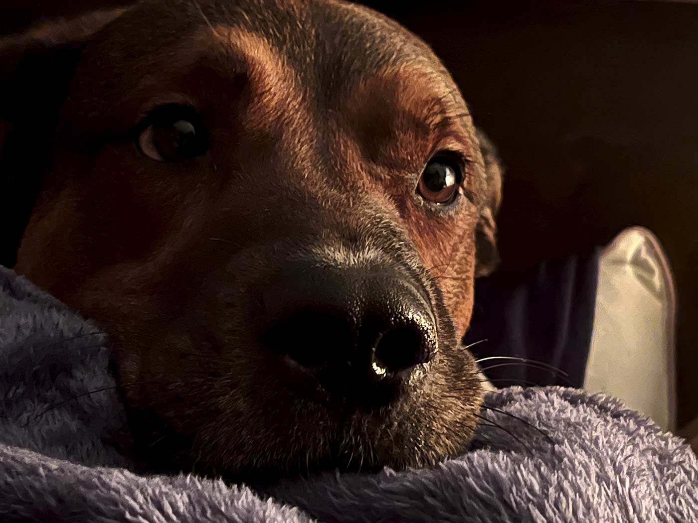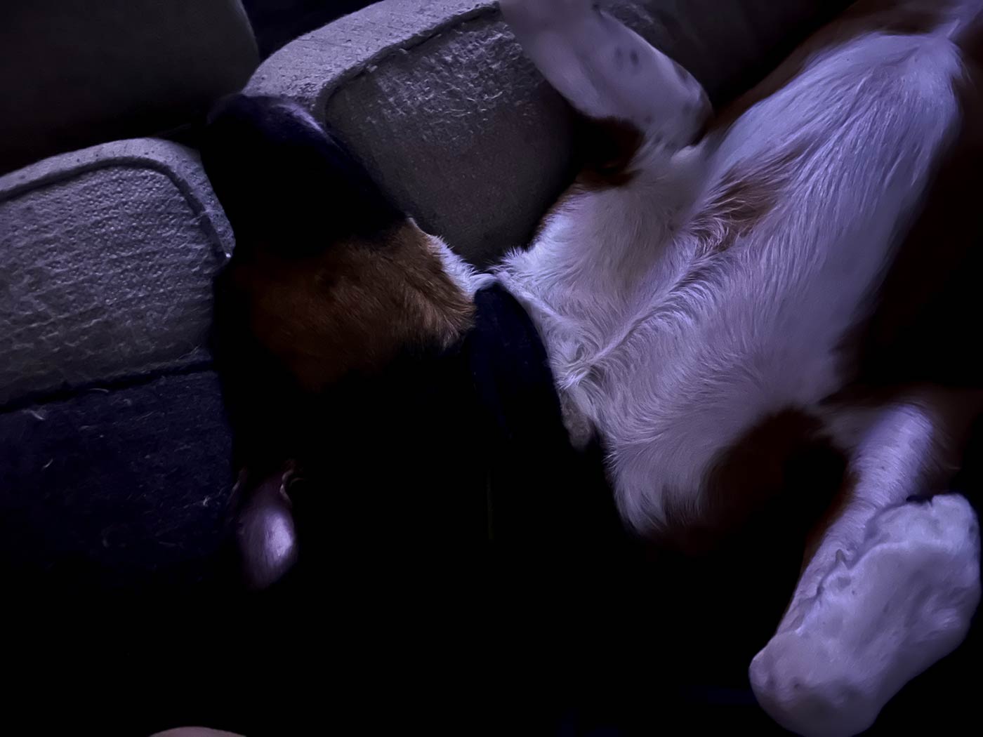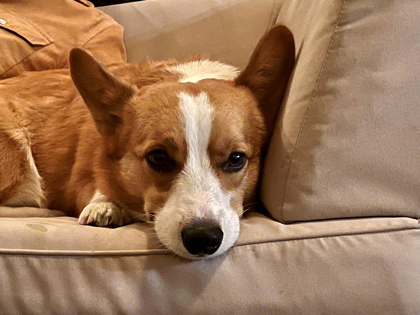 January 26, 2022 - Wednesday - I had some work to do this evening. Zak came up to keep me company. One of the perks of having a large dog is he makes a great armrest and he's pretty warm. One of the downsides is he puts his face on my laptop and it gets a little messy. I swear it didn't look this way in person.