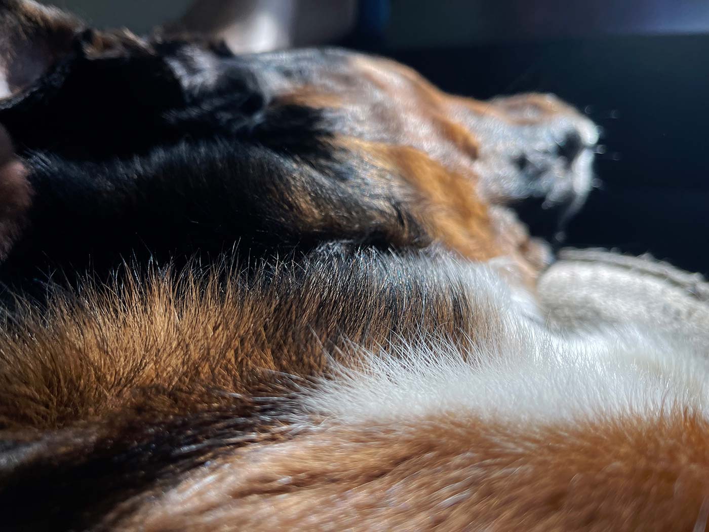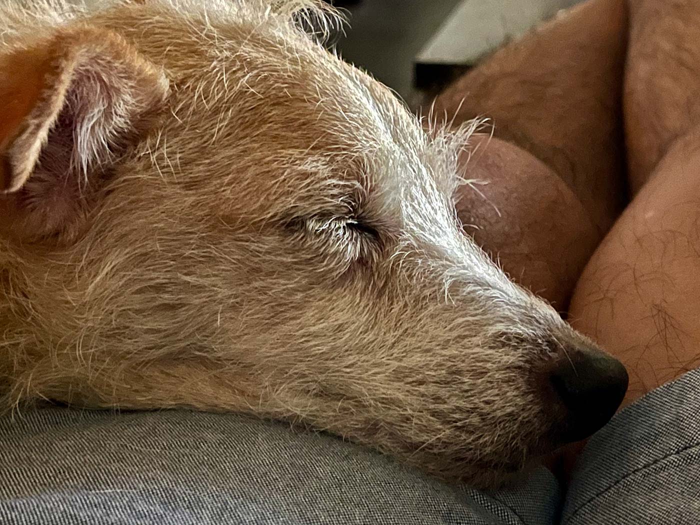 May 3, 2022 - Tuesday - This is still the best part of my days. Pancake, Biscuit and Zak all take turns laying with me at some point while I'm on the couch each evening I'm here. Pancake and Zak are even beginning to get a little closer. She's not completely comfortable around him yet but she's getting better with him.