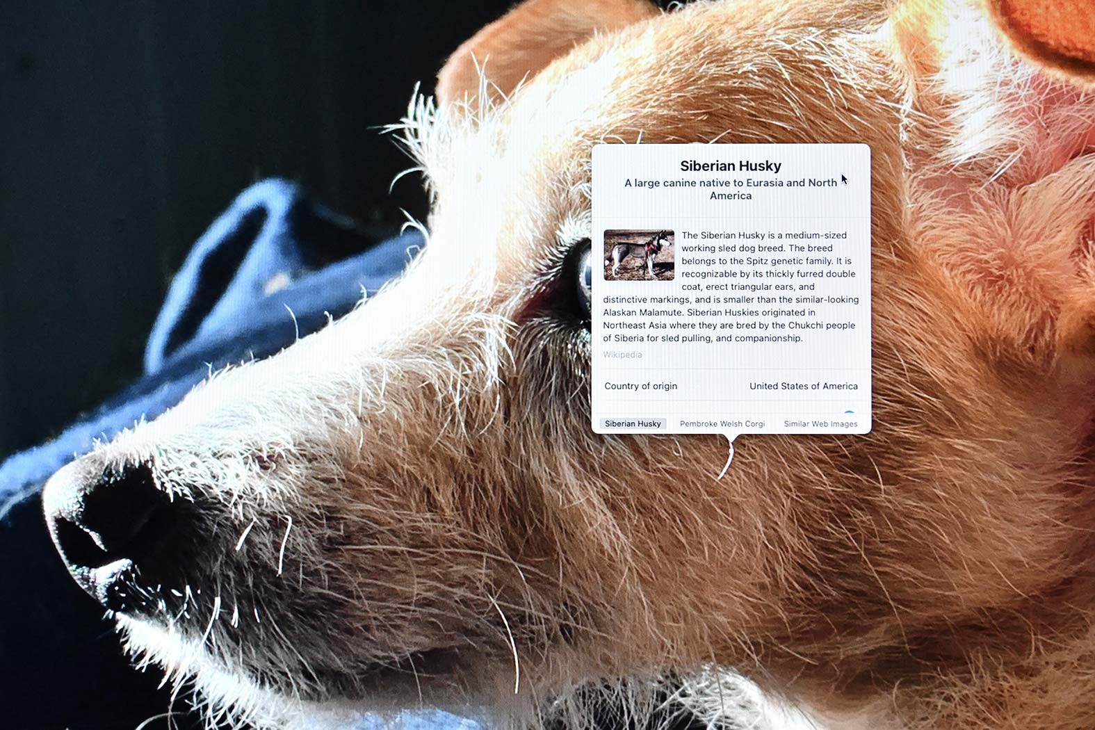 May 12, 2022 - Thursday - I tried moving my photo library on my internal hard drive to an external. It was too slow. In the process of moving it back I had to re-tag some of my photos. Photos recognizes different things automatically and gives you links to more info on what it detects. Pancake, who's the size of a medium cat is apparently the smallest Siberian Husky ever.